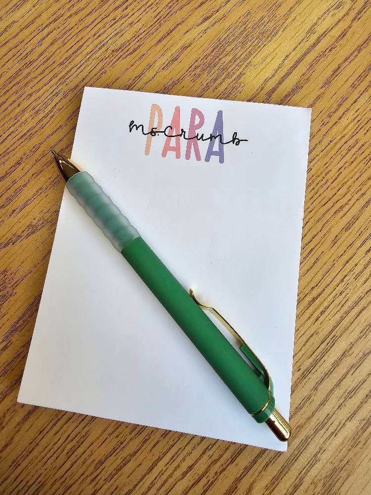Each notepad is customized with the recipient's name, adding a personal and unique touch.