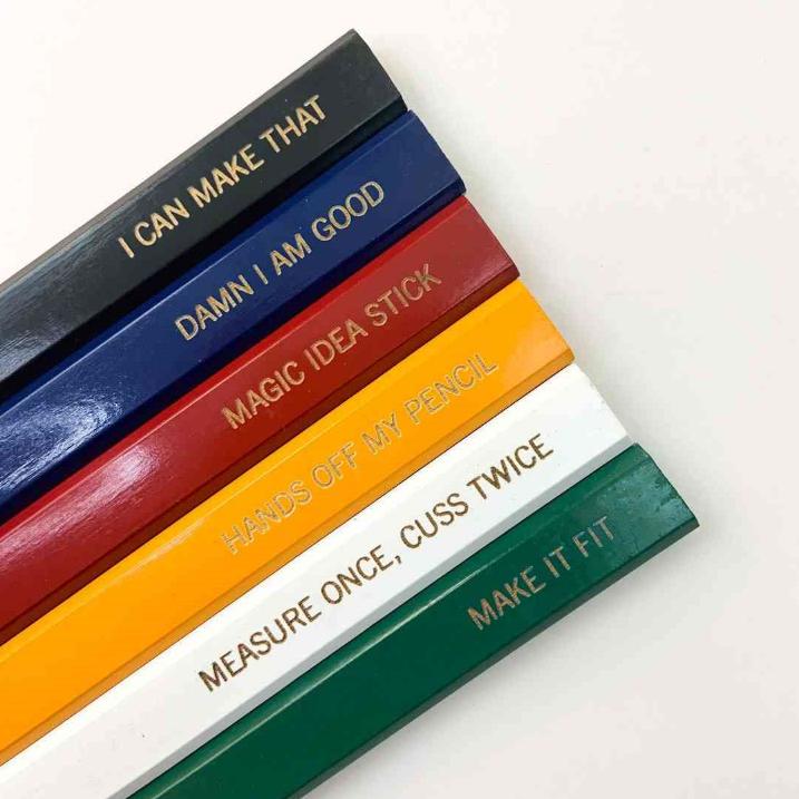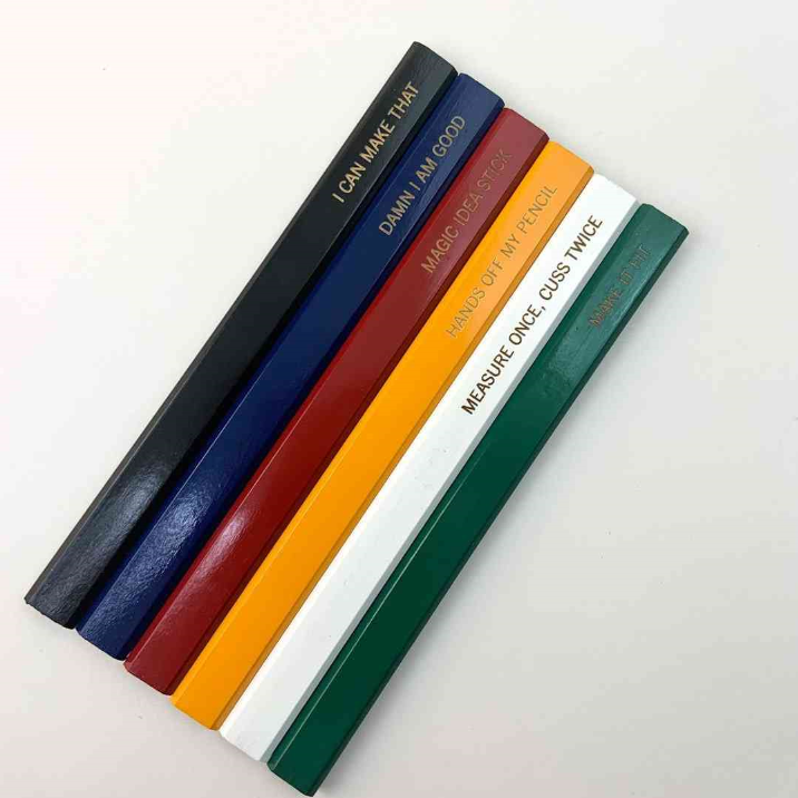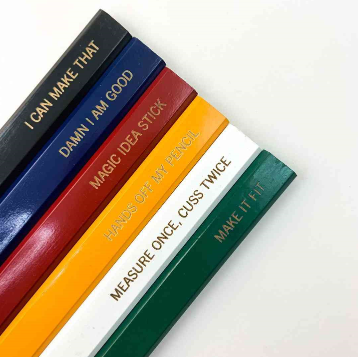 Looking for a useful gift with a little humor? This pencil set is sure to get a laugh from your favorite woodworker, carpenter, or handyman. Each pencil measures approximately 7" long.