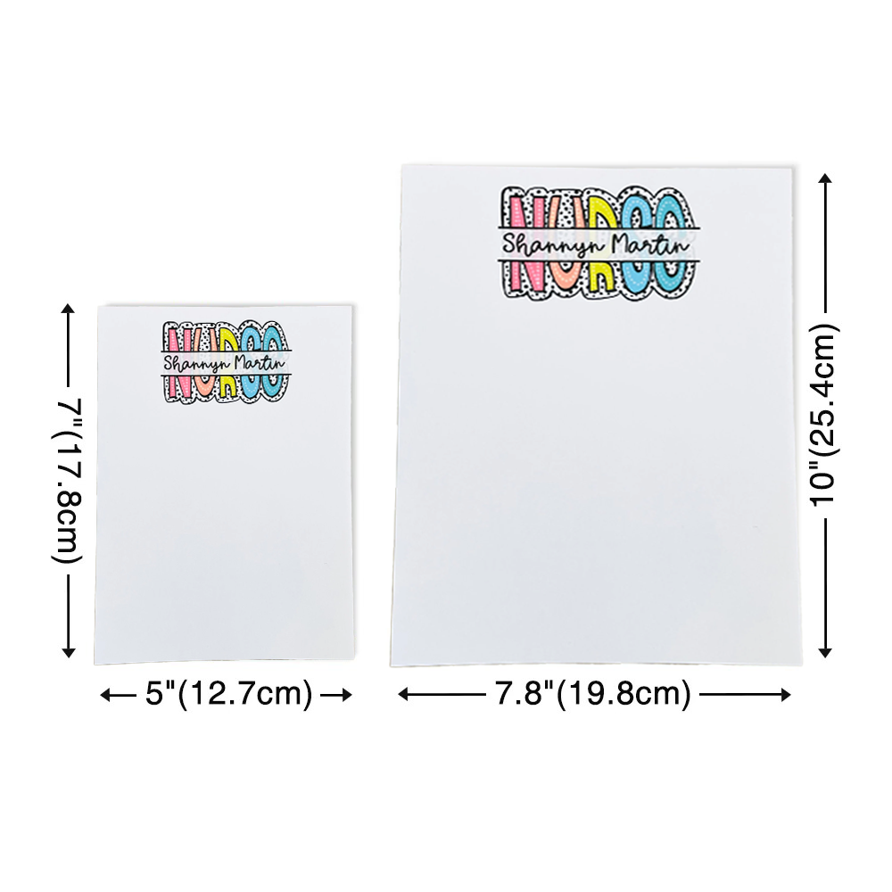 Each notepad is customized with the recipient's name, adding a personal and unique touch.