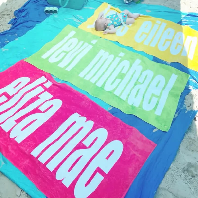 A personalized beach towel is a perfect gift for any occasion. Great for vacations, reunions, pool parties, and countless other events! Perfect for relaxation plus staying dry all day, in style.